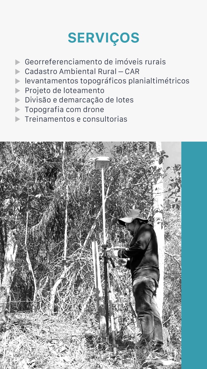 Bio: Fundada em 2019, desde então vem trabalhando nas diversas áreas da agrimensura e cartografia, destacando-se em georreferenciamento de imóveis rurais, levantamentos topográficos planialtimétricos, topografia com drones e consultorias/treinamentos na utilização de ferramentas, metodologias e equipamentos na topografia.
