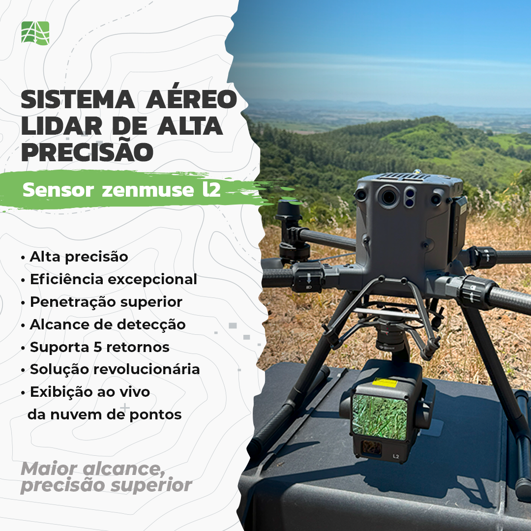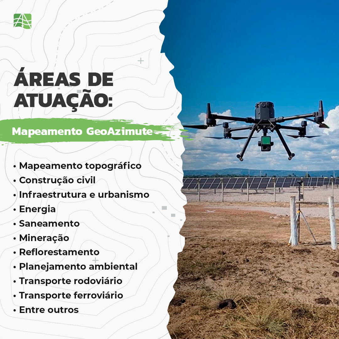 Descrição: A Geoazimute atua na área de aerolevantamento com drone e dispomos de sensor laser scanner (LiDAR) e RGB para geração de ortomosaicos, MDS, MDT, curvas de nível, planta topográfica e afins. O mapeamento com sensor LiDAR embarcado em drone apresenta diversas vantagens, é possível adquirir dados detalhados com precisão centimétrica (~3cm), obtendo produtos de alta qualidade. Outro destaque da tecnologia é a redução do tempo para captura e processamento dos dados, garantindo alta produtividade e uma grande economia de custo. Além disso disso o mapeamento com drone se destaca em mapeamento de área de mata fechada e de difícil acesso.